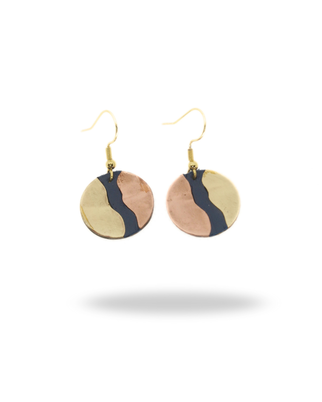 Confectionnées avec soin, ces boucles d’oreilles mettent en valeur le mariage du cuivre et du laiton, tandis que le cuir bleu apporte une touche subtile de couleur et de légèreté. Un bijou contemporain, facile à porter au quotidien.